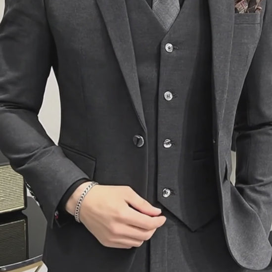 Le raffinement contemporain se dévoile dans cet ensemble trois pièces qui transcende les codes du vestiaire masculin.